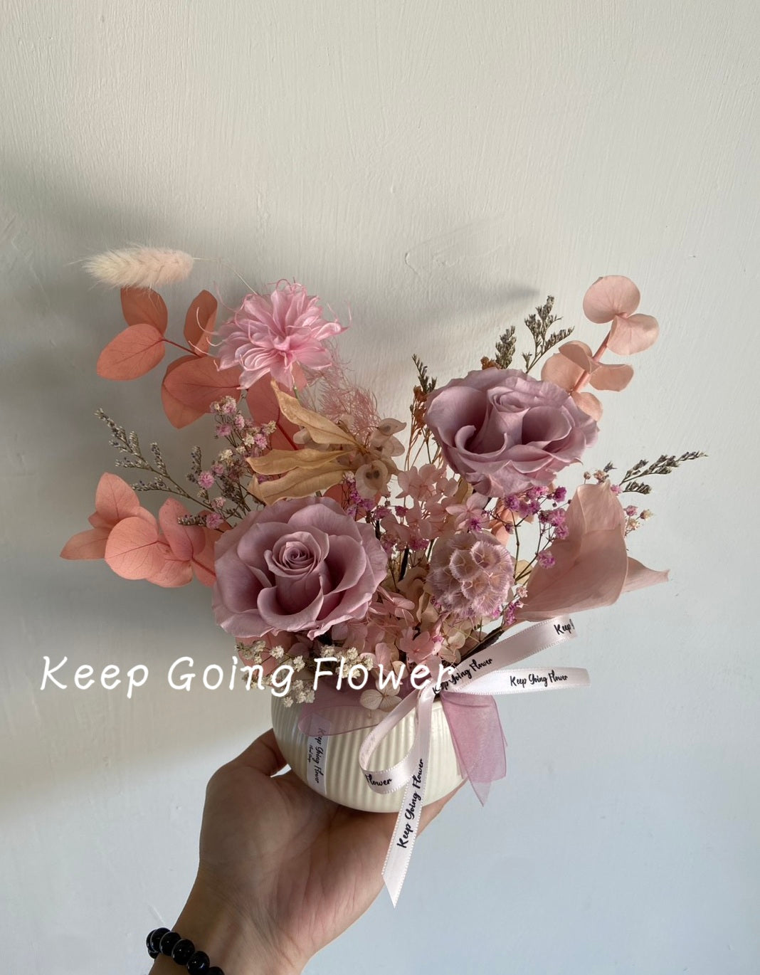 ◆ 配花:永生花材 & 乾燥花材。